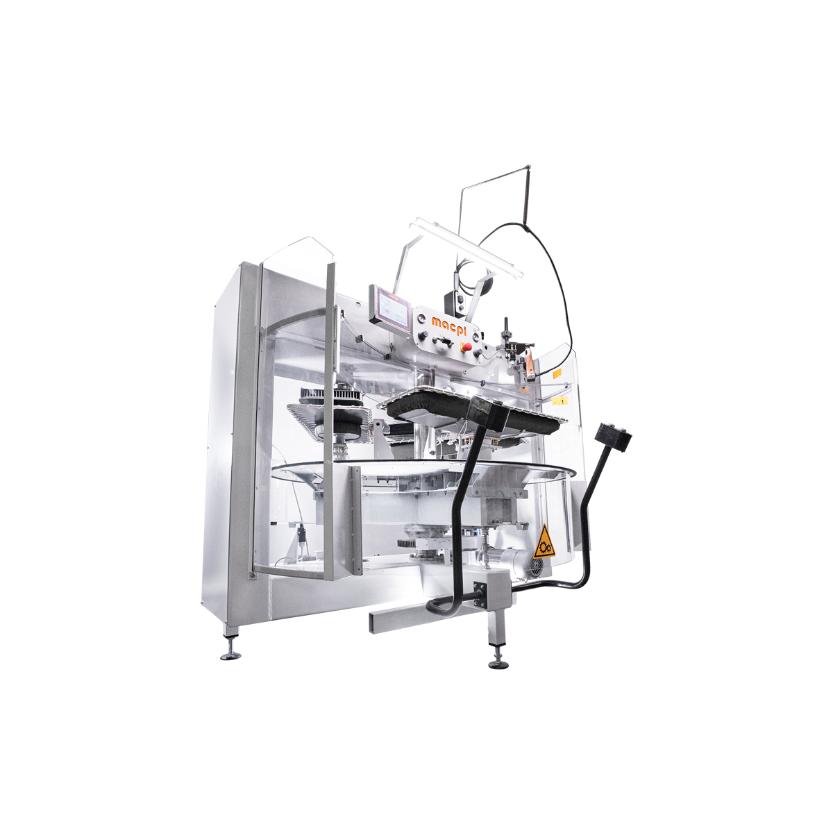 Three-station bonding carousel with interchangeable lower shapes with automatic 120° rotation, two upper shapes with maximum size 800x250mm. One is electrically heated and the other one is for cooling.